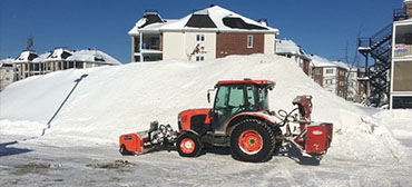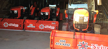 Notre équipement comprend plusieurs tracteurs récents avec gratte avant et souffleuse arrière tous deux munies de téflon* (spécialement conçu pour éviter les dommages aux entrées). Votre stationnement sera déblayé très tôt le matin afin de faciliter votre départ au travail et avant votre retour, le travail sera complètement terminé. Nous pouvons aussi vous offrir un service personnalisé de déneigement selon vos exigences et à un prix très concurrentiel. Service 24 heures sur 24, 7 jours sur 7!